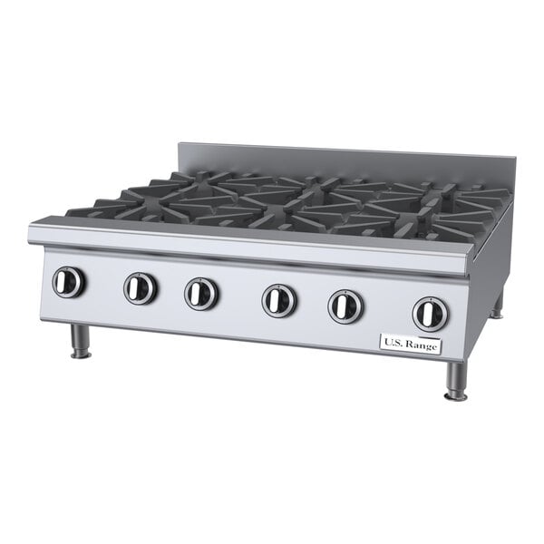 Perfect for diners, cafeterias, fine dining venues, and fast food restaurants, the U.S. Range UTOG36-6 liquid propane heavy-duty 6 burner countertop range is built for easy and reliable operation. It features 6 burners, each rated at 26,000 BTU/h for ample cooking power. Each burner is controlled with an independent and adjustable knob, and each pilot is protected from accidental spills to ensure longevity.