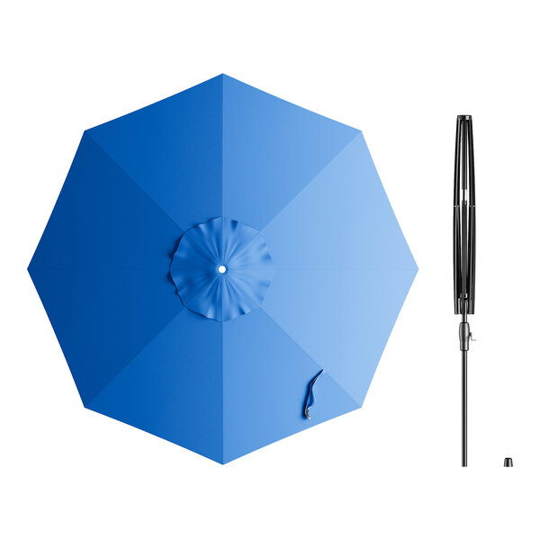 View All ItemsEnjoy the outdoors under the pleasant shade of this Lancaster Table & Seating 9' lake blue crank lift auto tilt black aluminum umbrella!