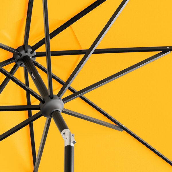 View All ItemsEnjoy the outdoors under the pleasant shade of this Lancaster Table & Seating 9' sunflower yellow crank lift auto tilt black aluminum umbrella!