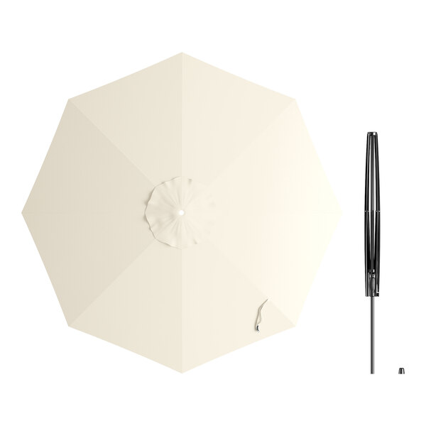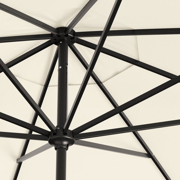Lancaster Table & Seating 11' Round Shell Beige Crank Lift Black Aluminum Umbrella