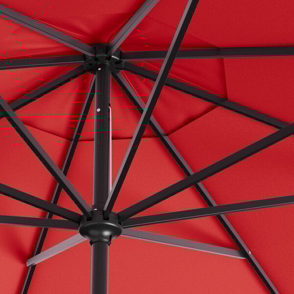 Lancaster Table & Seating 11' Round Carnation Red Crank Lift Black Aluminum Umbrella