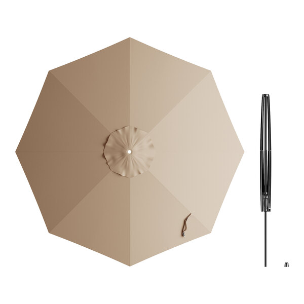 Lancaster Table & Seating 11' Round Tundra Tan Crank Lift Black Aluminum Umbrella