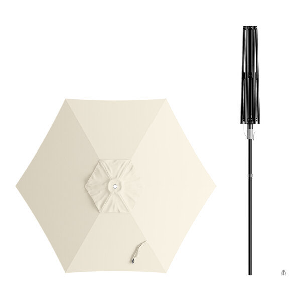 Lancaster Table & Seating 6' Round Shell Beige Push Lift Black Aluminum Umbrella