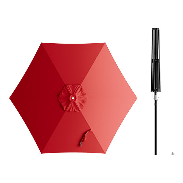 Lancaster Table & Seating 7 1/2' Round Carnation Red Push Lift Black Aluminum Umbrella