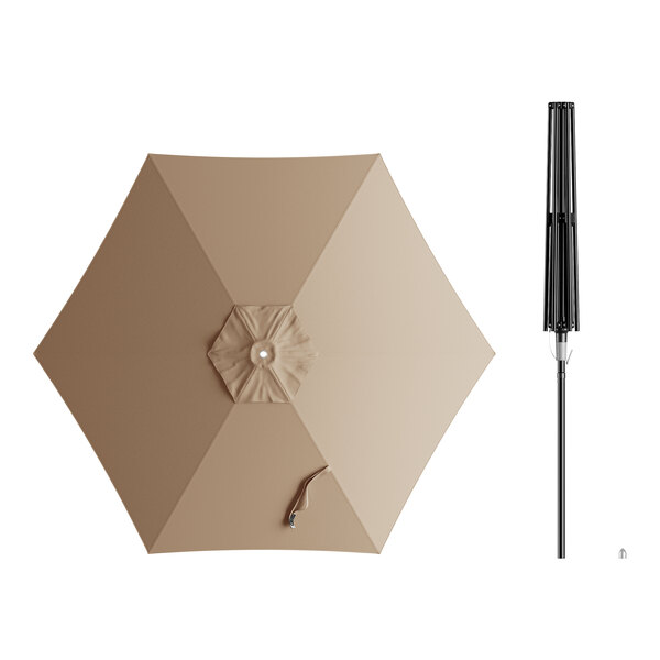 Lancaster Table & Seating 7 1/2' Round Tundra Tan Push Lift Black Aluminum Umbrella