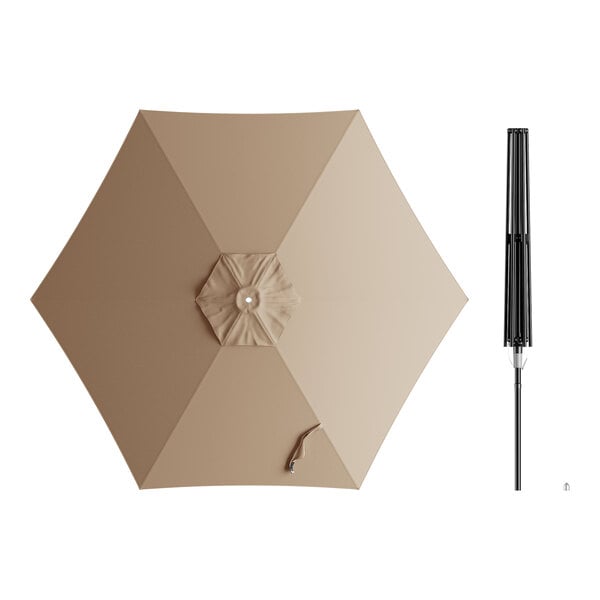 Lancaster Table & Seating 9' Round Tundra Tan Push Lift Black Aluminum Umbrella