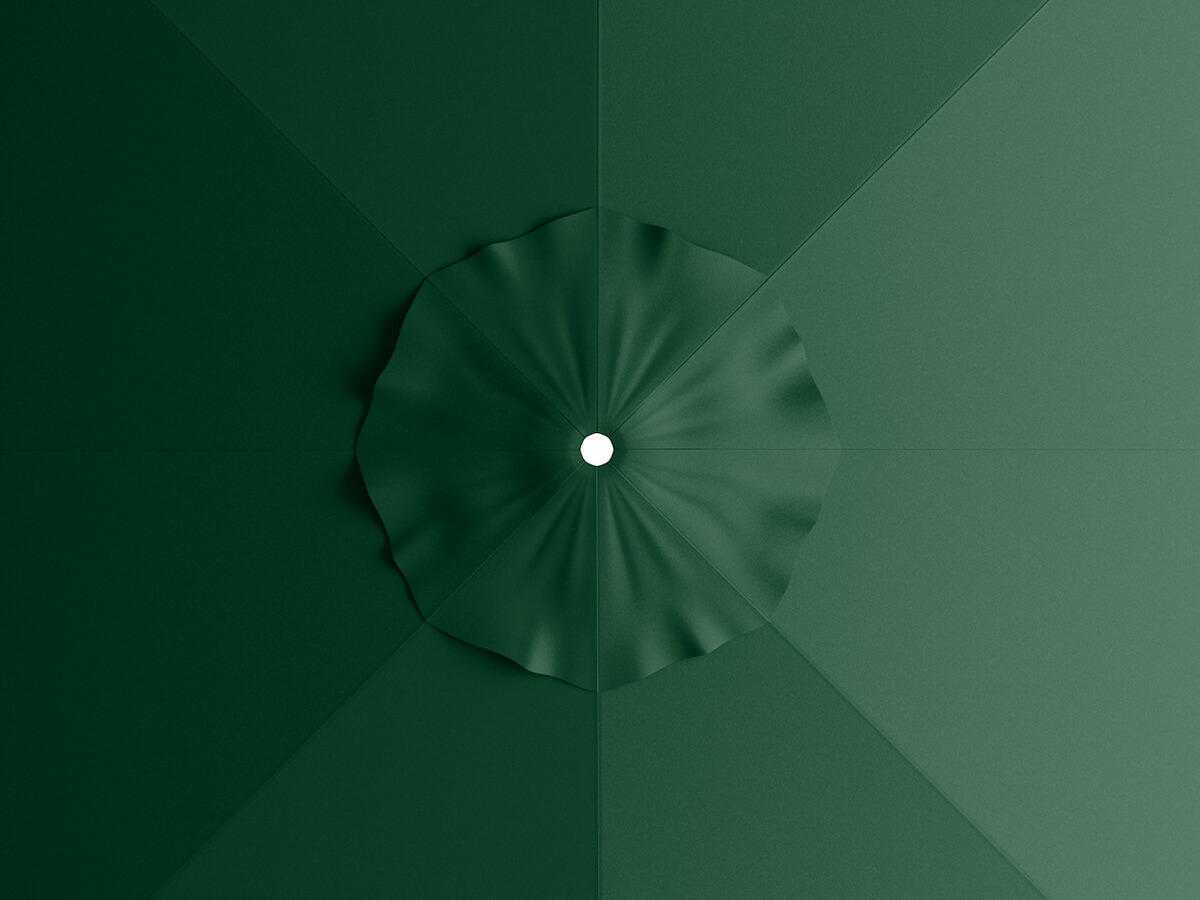 The fabric is fade-resistant and has UV50+ sun protection to last for 3-4 years. It's made of water-resistant 260 GSM, solution-dyed acrylic fabric. Plus, its forest green color is sure to add a vibrant look to any space, making it perfect for parties, picnics, or other catering events. Since it's easy to maneuver, you can conveniently relocate it to anywhere you need shade, making it a versatile choice for a variety of outdoor layouts.