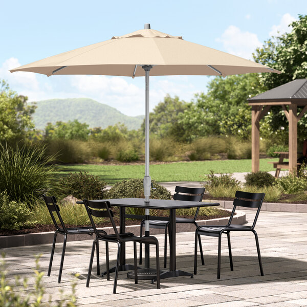 View All ItemsEnjoy the outdoors under the pleasant shade of this Lancaster Table & Seating 9' sand crank lift silver aluminum auto tilt umbrella!