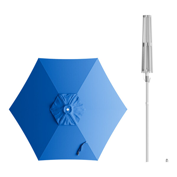 Lancaster Table & Seating 6' Round Lake Blue Push Lift Silver Aluminum Umbrella