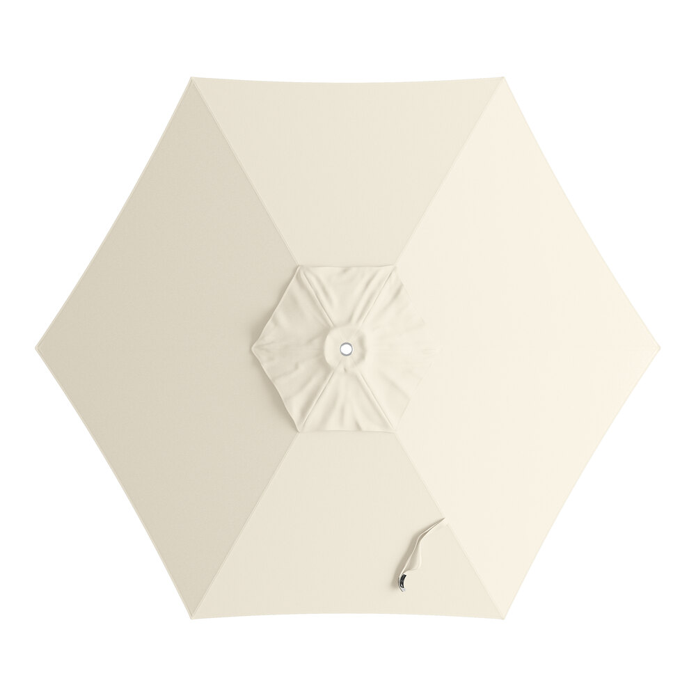 This umbrella's silver powder-coated aluminum frame is built to withstand consistent use in your establishment. Its 1 1/2" pole diameter makes it compatible with select umbrella bases (sold separately), and you can prolong the life of your canopy with a compatible umbrella cover (sold separately). Reach for this Lancaster Table & Seating umbrella to enhance your outdoor space and keep guests happy and comfortable!