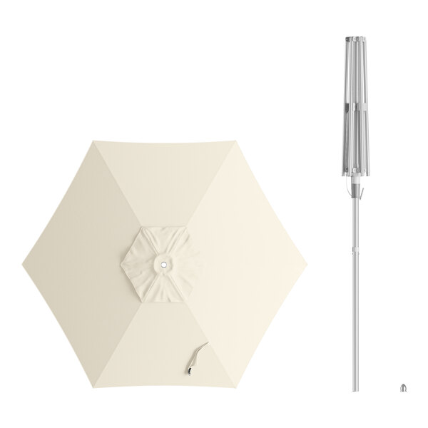 Lancaster Table & Seating 6' Round Shell Beige Push Lift Silver Aluminum Umbrella