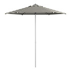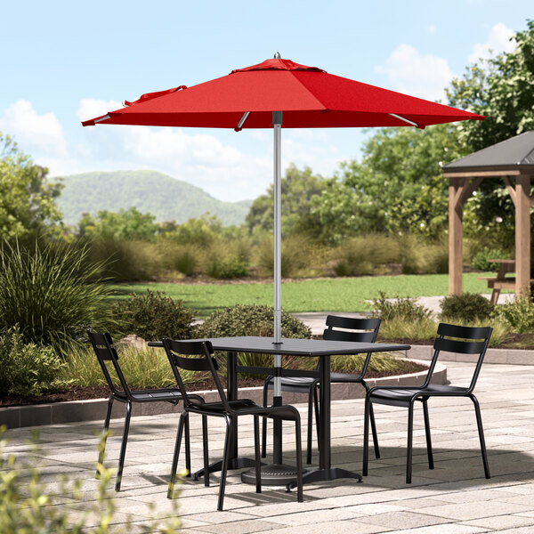 This umbrella's silver powder-coated aluminum frame is built to withstand consistent use in your establishment. Its 1 1/2" pole diameter makes it compatible with select umbrella bases (sold separately), and you can prolong the life of your canopy with a compatible umbrella cover (sold separately). Reach for this Lancaster Table & Seating umbrella to enhance your outdoor space and keep guests happy and comfortable!