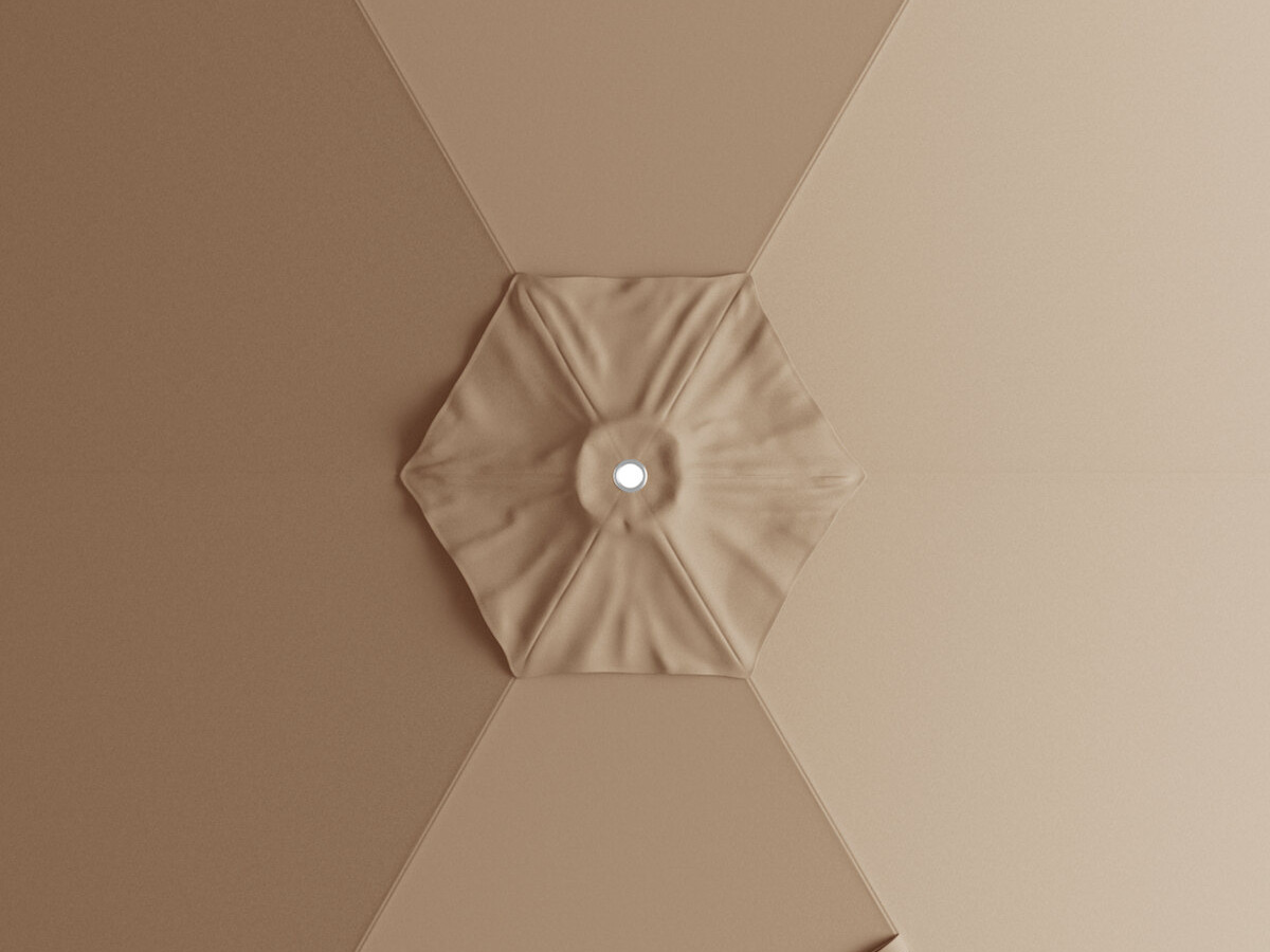 Umbrella had to be added to framework, very difficult. Then had to push up to open to hold in place, nearly impossible. Nowhere did I see assembly required in description. Too pricey for labor required.