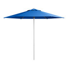 This umbrella's silver powder-coated aluminum frame is built to withstand consistent use in your establishment. Its 1 1/2" pole diameter makes it compatible with select umbrella bases (sold separately), and you can prolong the life of your canopy with a compatible umbrella cover (sold separately). Reach for this Lancaster Table & Seating umbrella to enhance your outdoor space and keep guests happy and comfortable!
