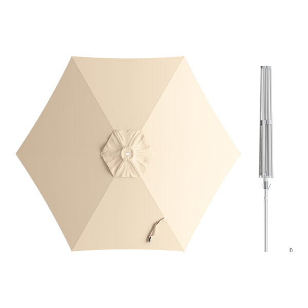Lancaster Table & Seating 9' Round Sand Push Lift Silver Aluminum Umbrella