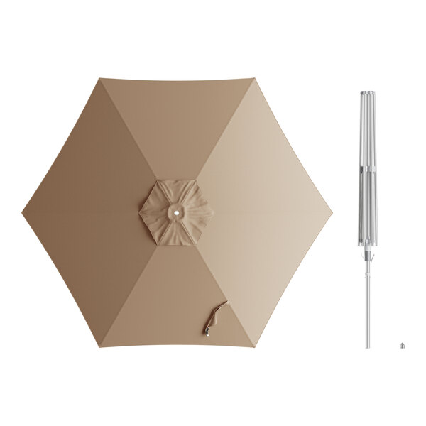 Lancaster Table & Seating 9' Round Tundra Tan Push Lift Silver Aluminum Umbrella