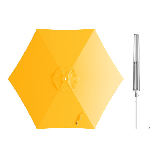 Lancaster Table & Seating 9' Round Sunflower Yellow Push Lift Silver Aluminum Umbrella