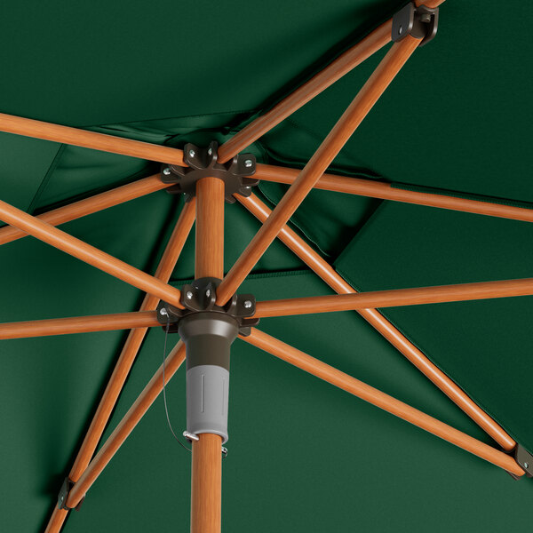 Lancaster Table & Seating 7 1/2' Round Forest Green Push Lift Woodgrain Aluminum Umbrella