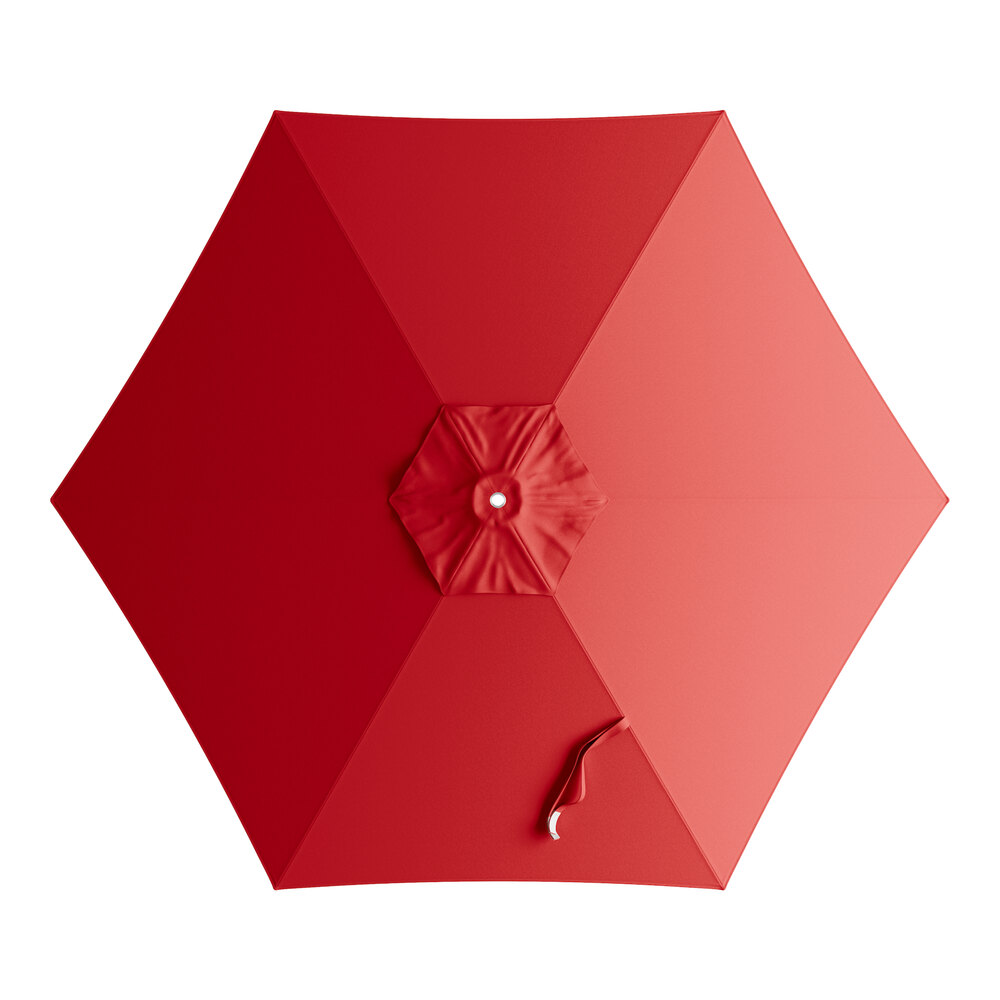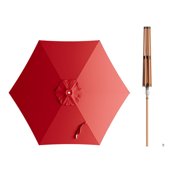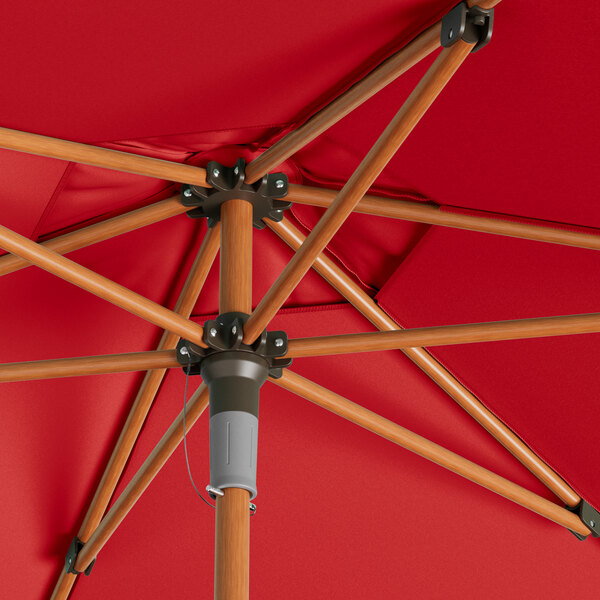 Lancaster Table & Seating 7 1/2' Round Carnation Red Push Lift Woodgrain Aluminum Umbrella