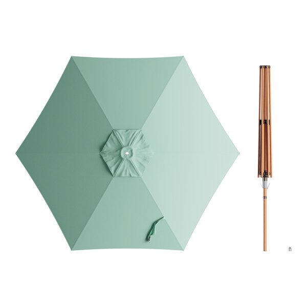 Lancaster Table & Seating 9' Round Glacier Blue Push Lift Woodgrain Aluminum Umbrella