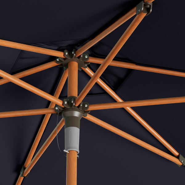 Enjoy the outdoors under the pleasant shade of this Lancaster Table & Seating 9' midnight navy push lift woodgrain aluminum umbrella!