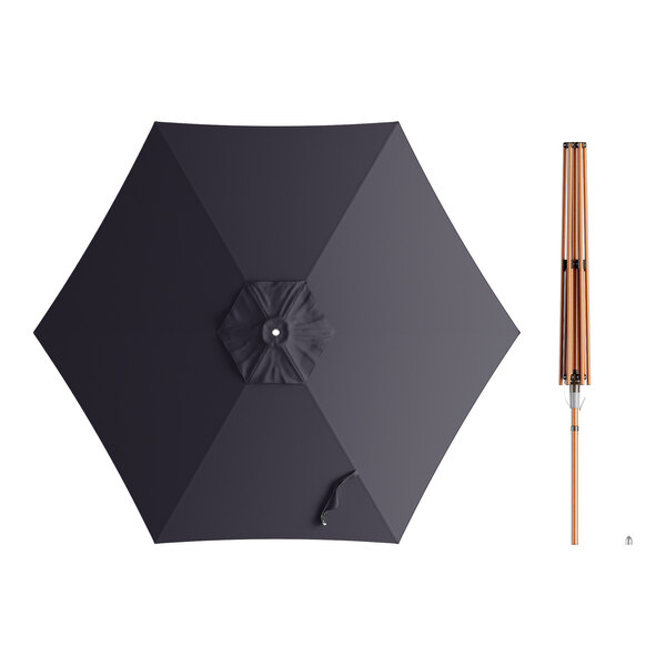 Lancaster Table & Seating 9' Round Midnight Navy Push Lift Woodgrain Aluminum Umbrella