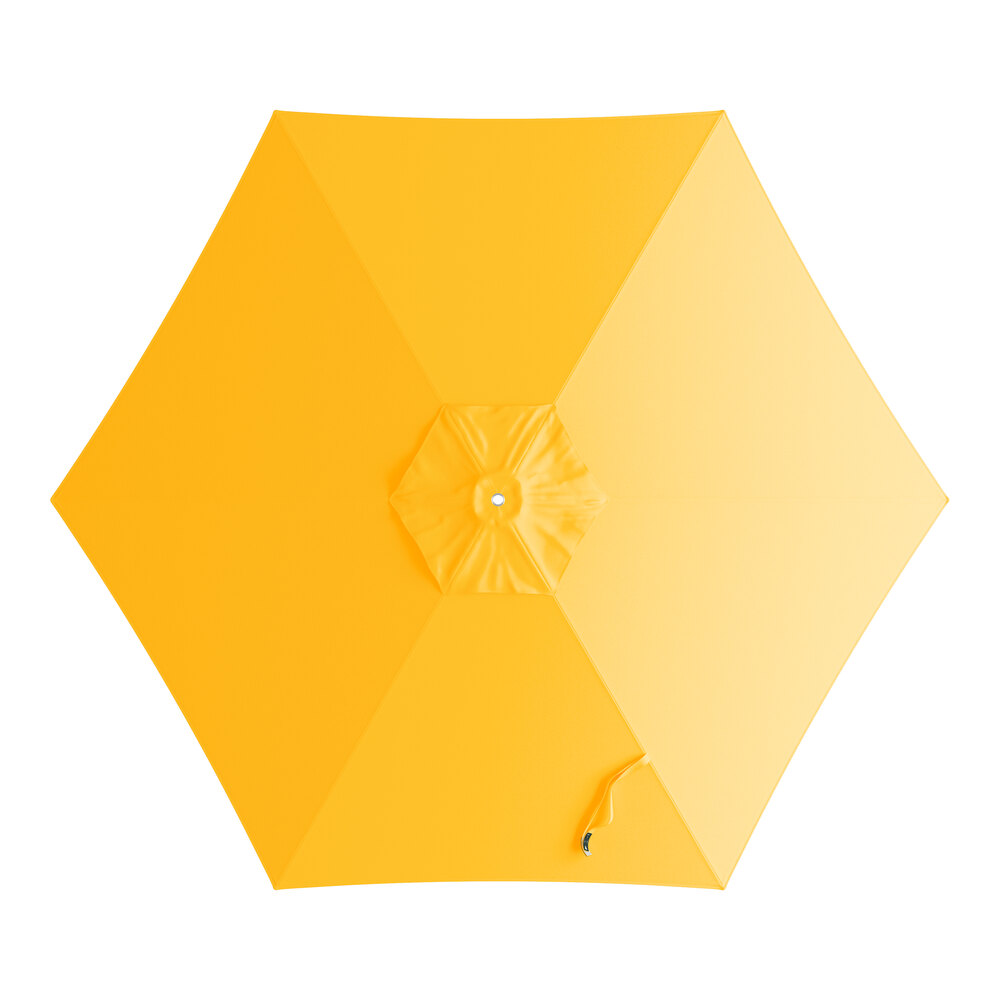 Lancaster Table & Seating 9' Round Sunflower Yellow Push Lift Woodgrain Aluminum Umbrella