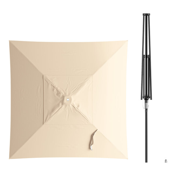Lancaster Table & Seating 6 1/2' Square Sand Push Lift Black Aluminum Umbrella