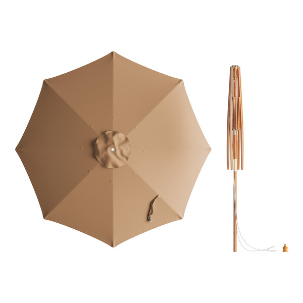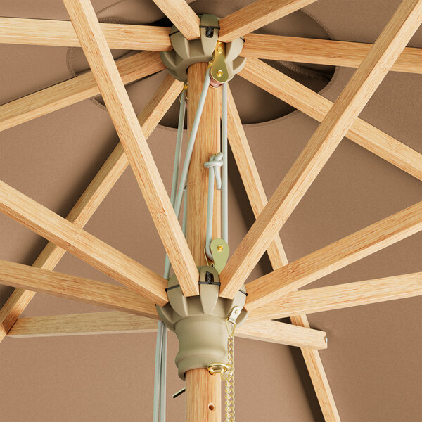 View All ItemsEnjoy the outdoors under the pleasant shade of this Lancaster Table & Seating 7 1/2' clay brown pulley lift bamboo umbrella!
