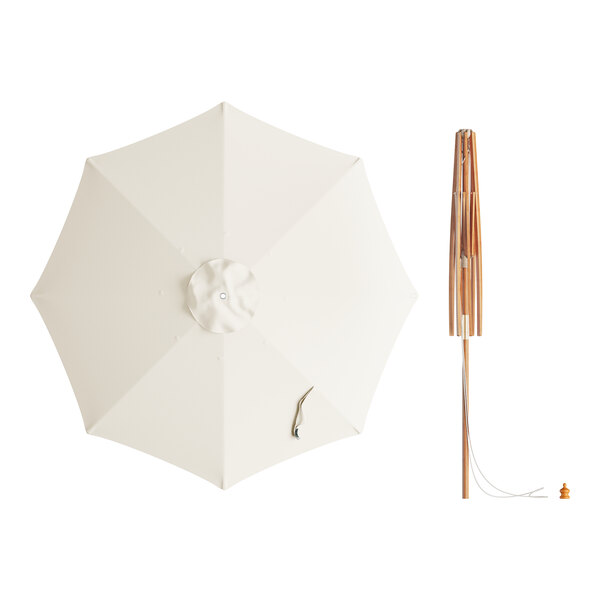 View All ItemsEnjoy the outdoors under the pleasant shade of this Lancaster Table & Seating 7 1/2' fossil white pulley lift bamboo umbrella!