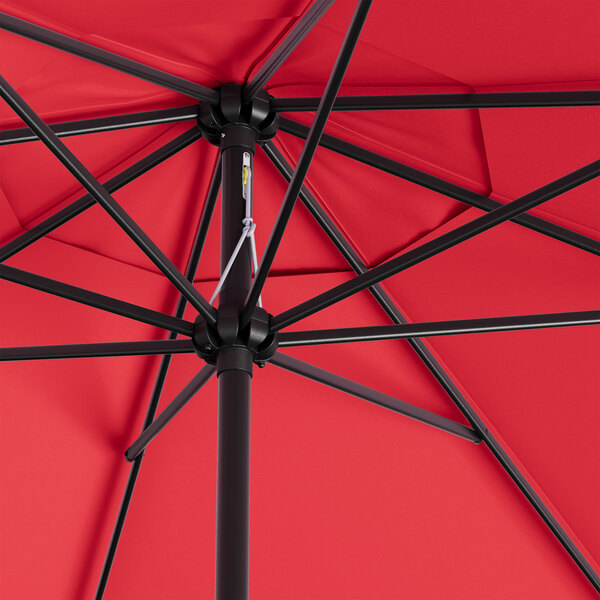 Lancaster Table & Seating 11' Round Poppy Red Crank Lift Black Steel Umbrella