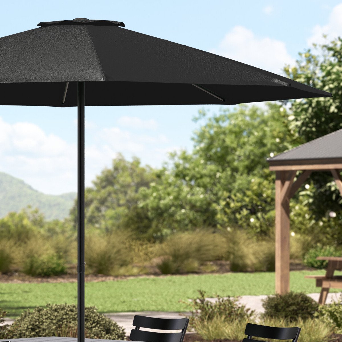 Lancaster Table & Seating 9' Round Coal Black Push Lift Black Steel Umbrella