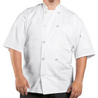 Dress your chefs in the best with this Uncommon Chef Delray Pro Vent 0421 unisex lightweight black short sleeve chef coat with mesh back. Made from a 5.25 oz. 65/35 poly-cotton poplin blend, this jacket is lightweight, comfortable, looks professional, and is durable enough to stand up to any food service environment. The convenient short-sleeved design works to keep your staff cool in hot kitchens while the reinforced bar tacking ensures durability in the busiest of environments. A utility shoulder pocket is on one sleeve of the jacket and is the perfect spot to store thermometers or pens. Plus, its mitered breast pocket can also help store other necessary kitchen items.