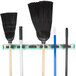 This unger hang up tool with 6 clips is great and makes organizing brooms and mops a snap. I also use a color coded system and I place one mop and broom on each clip. Would recommend.