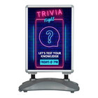 Grab the attention of passersby and direct them to your establishment with this United Visual Products double-sided aluminum sign! This sign features a black-colored aluminum frame in a sleek, satin finish that snaps shut on all four sides. Its double-sided format securely displays a 22" x 28" sign on each side (sold separately) for effective advertisement from each direction. Posters can be changed out easily to keep your advertising fresh and relevant. Clear, non-glare sheets protect the poster, maintaining visibility in various lighting conditions.