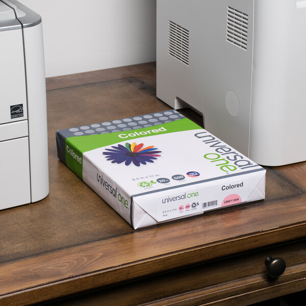 Ensure your office has the essentials with this Universal Office UNV11204 8 1/2" x 11" pink 20 lb. color copy paper. Thanks to its 20 lb. basis weight, this 8 1/2" x 11" standard letter size color copy paper is perfect for everyday, high-volume use in a variety of applications from copiers and laser printers to offset presses and spirit duplicators. Boasting a vibrant, pink color, this copy paper is ideal for sending crisp and clear reports with some extra pizzazz. Use it to create enticing invitations or just to spice up your everyday documents in your school, office, or establishment.