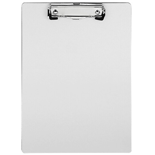 Increase organization within your business with this Universal UNV40302 plastic clipboard. Its low-profile 1/2" capacity keeps the clip from accidentally opening and spilling papers all over the work area. The smooth writing surface helps keep your writing legible and reduces the risk of tearing paper as you write. The clip is attached to the 9" side making it perfect for papers printed in portrait orientation.