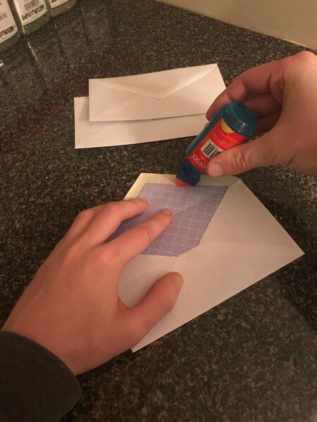 To moisten an envelope, this squeeze bottle does the work. Fill it with water, and give it a squeeze across the envelope adhesive, and the envelope flap adheres.