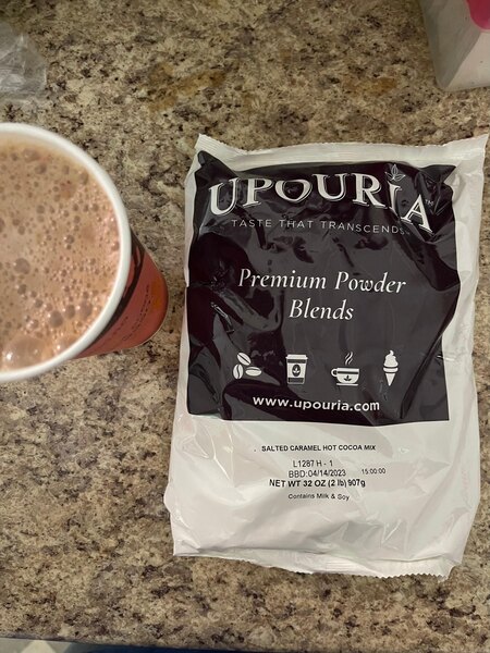 Indulge customers in the decadent taste and delightful aroma of this UPOURIA® salted caramel hot chocolate! This enticing mix features a rich and creamy, classic hot cocoa taste with a smooth, sweet and salty caramel finish to deliver a gourmet beverage with a smooth consistency. For added presentation and indulgent flavor, top each cup with whipped cream and chocolate sauce. Easy to make and great tasting, this convenient salted caramel hot chocolate mix allows your patrons to enjoy the popular combination of caramel and chocolate in any season.