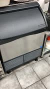 The machine is built with heavy-duty, rust-free, and corrosion-resistant aluminum alloy panels along the front and sides. It also features an ergonomic ice bin door that slides back for easy, sanitary access. An ice scoop is included, as well. A 115V electrical connection is required for operation.