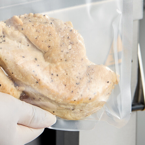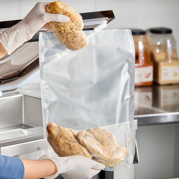 Securely sealing any solid or liquid product with a chamber vacuum packaging machine, this bag is designed to be frozen, refrigerated, or microwaved. Plus, it can withstand being boiled for up to 20 minutes, allowing you to use it to cook directly in water. The heat resistance of the bag makes it great for sous vide cooking as well as for storage applications.