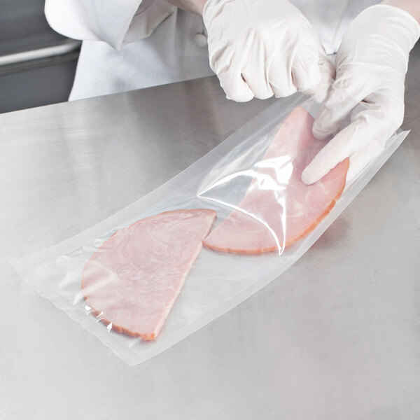 Great for a variety of applications, vacuum packaging bags help extend the life of product while also preparing product for sous vide cooking. These particular bags are perfect for use with any chamber vacuum packaging machine, and each bag features a 14" open end for inserting food, whether solid or liquid. Designed for industrial use, the bags are 3 mil thick and resist punctures and abrasions to reliably preserve product.