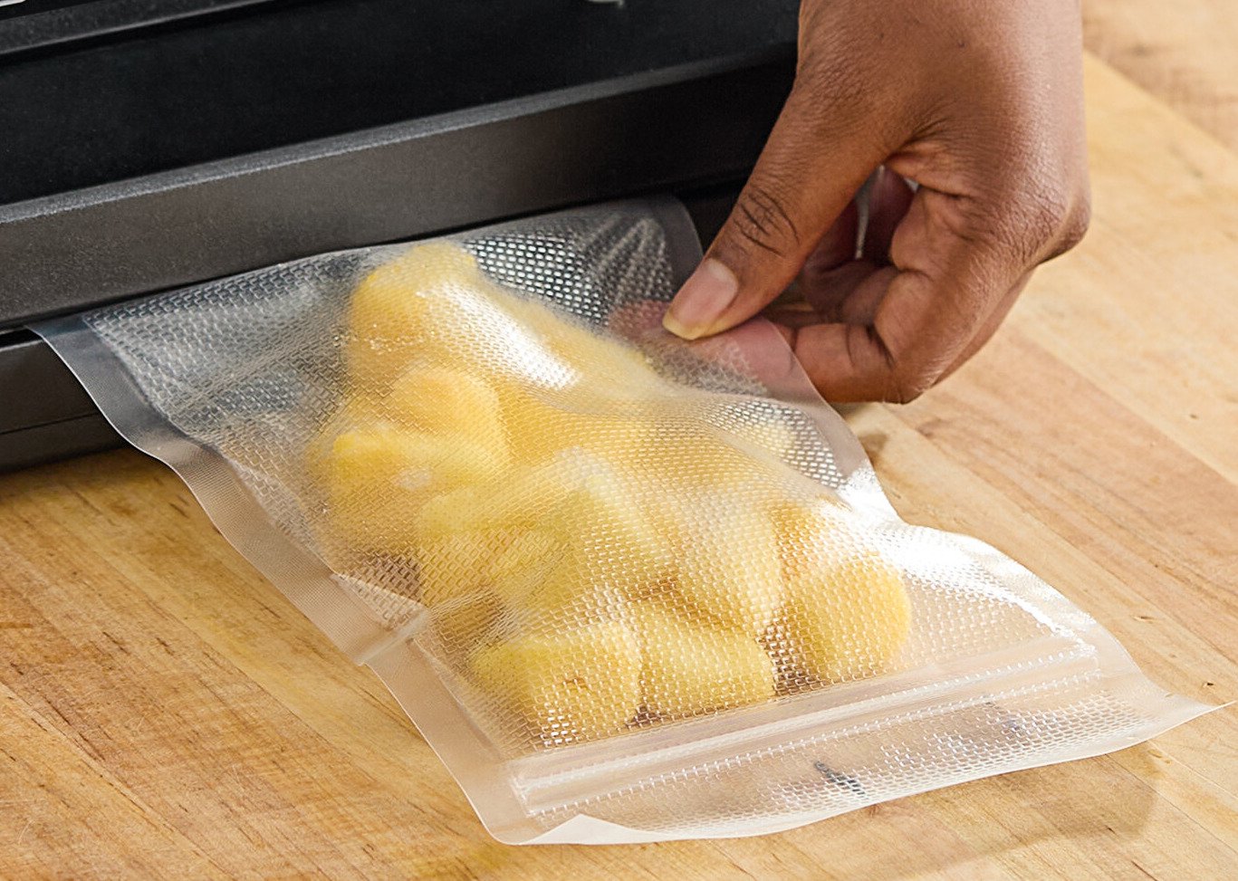Securely sealing product with an external vacuum packaging machine, the bag is designed for be frozen, refrigerated, or microwaved, and can withstand being boiled, making it great for sous vide cooking, as well as for storage applications.