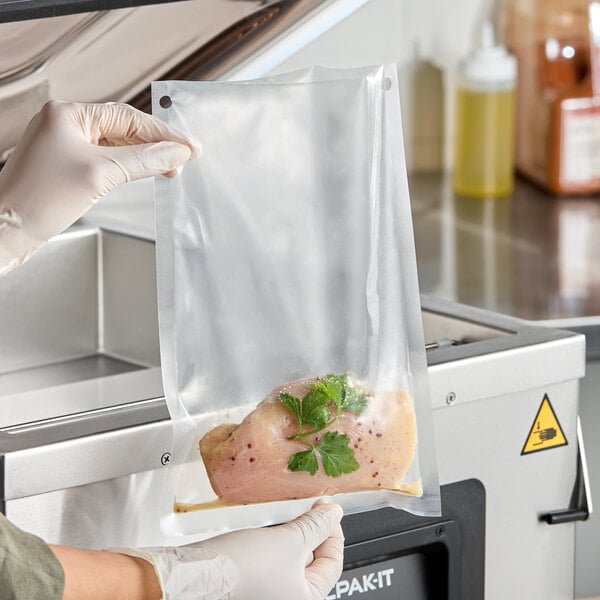 I recently purchased these chamber vacuum sealer bags for freezing many small portions of food. I really like that they have holes, as it is nice to be able to clip a bunch of the same product together or hang them in coolers/freezers. They appear to be very durable and will last a long time. I would highly recommend these if you need smaller bags for small portions.