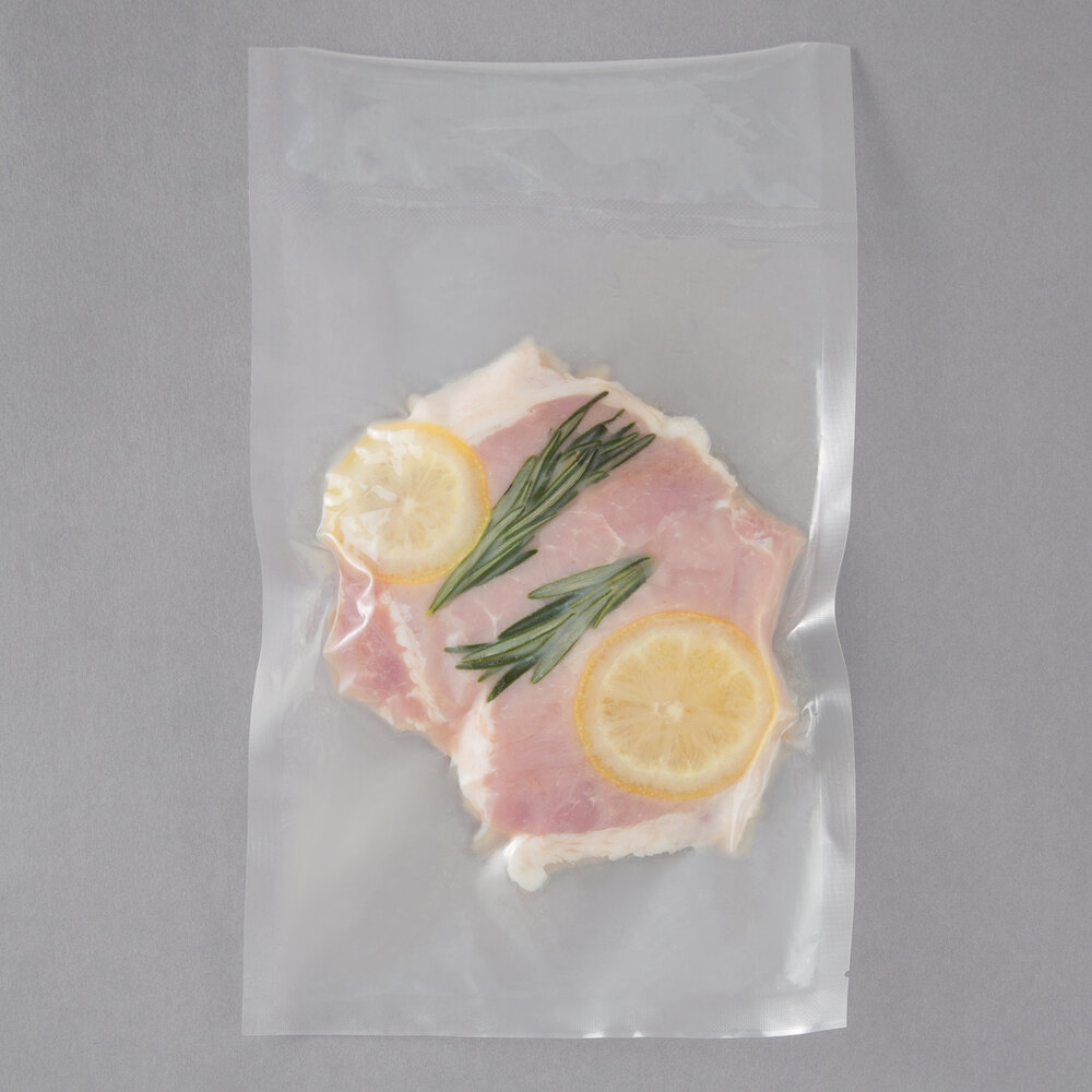 Great for a variety of applications, vacuum packaging bags help extend the life of product while also preparing product for sous vide cooking. These particular bags are perfect for use with any chamber vacuum packaging machine, and each bag features a 7" open end for inserting food, whether solid or liquid. Designed for industrial use, the bags are 3 mil thick and resist punctures and abrasions to reliably preserve product.