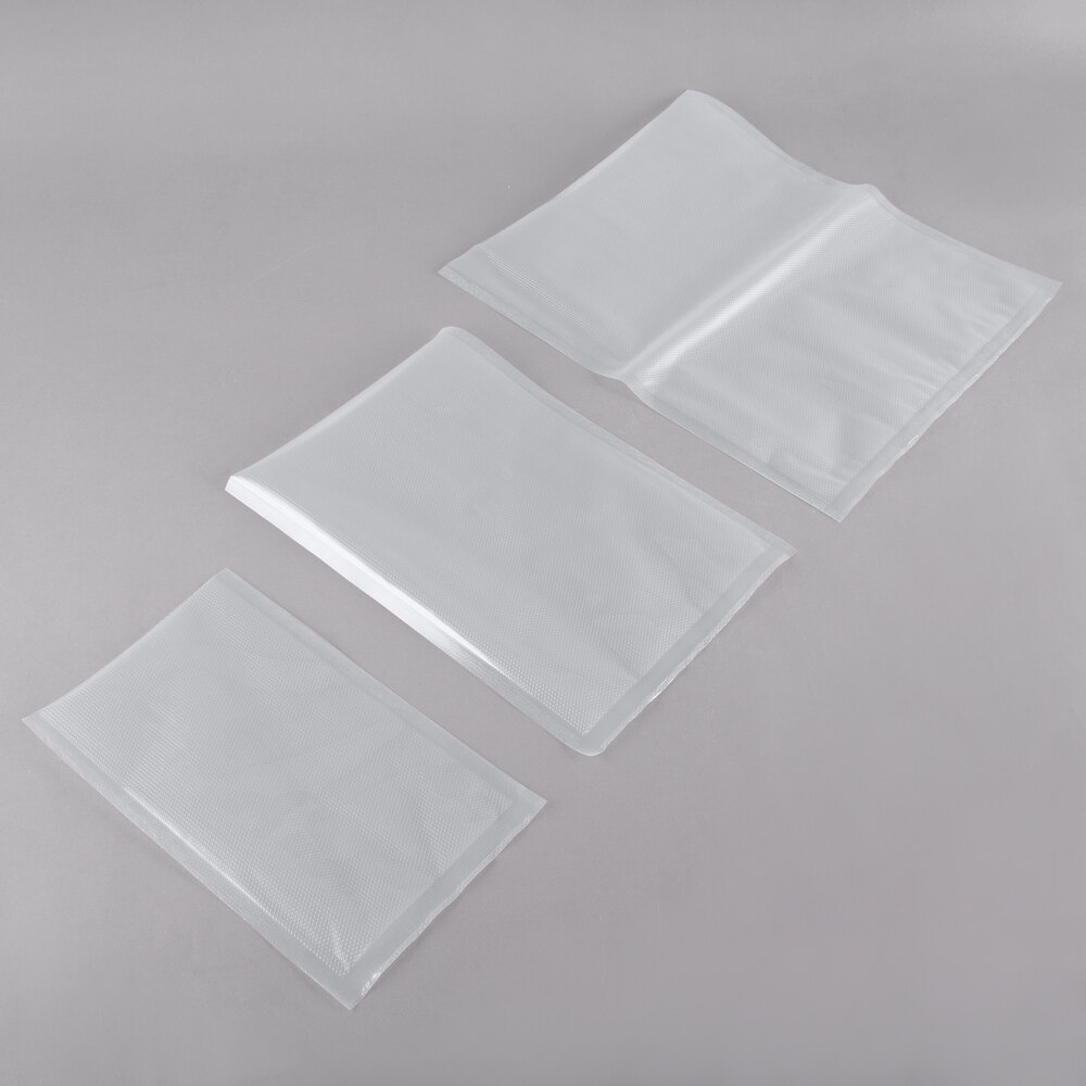 Each bag is made of 80% polyethylene and 20% nylon, with a third layer of textured mesh material and a 3 mil thickness for superior strength and complete air removal with low stress on the machine.