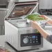 Perfect for saving and marinating food or even preparing it for sous vide, this model's 10 1/4" seal bar and powerful 2/5 hp oil pump ensure a reliable, secure seal after every use. The efficient design and precise, programmable options makes it easy to create an airtight seal around meats, vegetables, and even coffee.