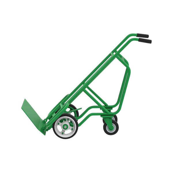 Transport loads more efficiently with the Valley Craft 1,000 lb. 4-wheel steel hand truck F84808A3. This hand truck features an impressive 1,000 lb. capacity and a 19" x 14" shoe platform, making it ideal for everyday transporting of loads. The shoe platform has a foot-operated trip spring that allows it to be folded up for easy storage and transport or folded down to push underneath loads or pallets. Once underneath a load, tilt the hand truck up to lock the platform and break-back the load for transport.