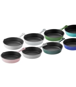 The black satin interior helps to achieve the higher surface temperature optimal for searing and frying, while the cast iron material creates unparalleled heat retention, cooking your food to the perfect temperature every time with induction, electric, ceramic, halogen, gas cooktops, in the oven or on a grill, showing its utmost versatility.