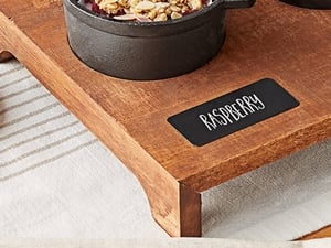 You can use the chalkboard squares in front of each pot to label the dishes, furthering their charm and visual appeal! These chalkboard squares provide a stylish way to distinguish between different dishes, dips, and desserts.